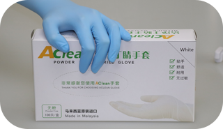 1) 藍色檢查手套